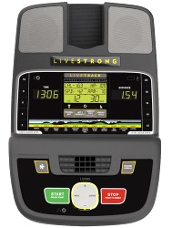 The Livestrong LS7.0B recumbent bike has a large LCD display window that shows heart rate, calories, pace, and resistance level, program stage information, as well as LIVETRACK fitness journal data.
